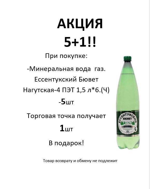 При покупке Мин.вода газ. Ессентукский Бювет Нагутская-4 ПЭТ 1,5 л*6.-5шт