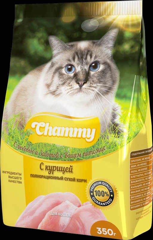 Полнорационный сухой корм Chammy для кошек с курицей 350гр*18